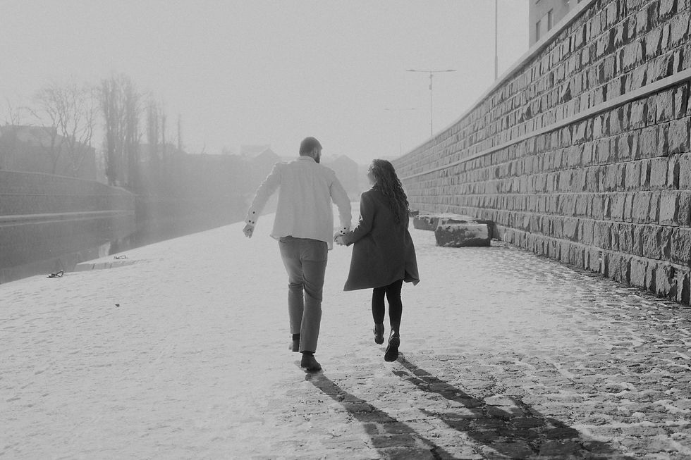 Tohle focení bylo ode mě pro mě. Už dlouho jsem chtěla navštívit Náplavku v Olomouci, která vznikla chvíli po tom, co jsem se z Olomouce odstěhovala. A protože voda, řeka, zima, sníh atd. dobře funguje.. byla jsem moc ráda, že mnou vybraný pár Anetka a Alex souhlasili, že můžeme něco právě tam nafotit.